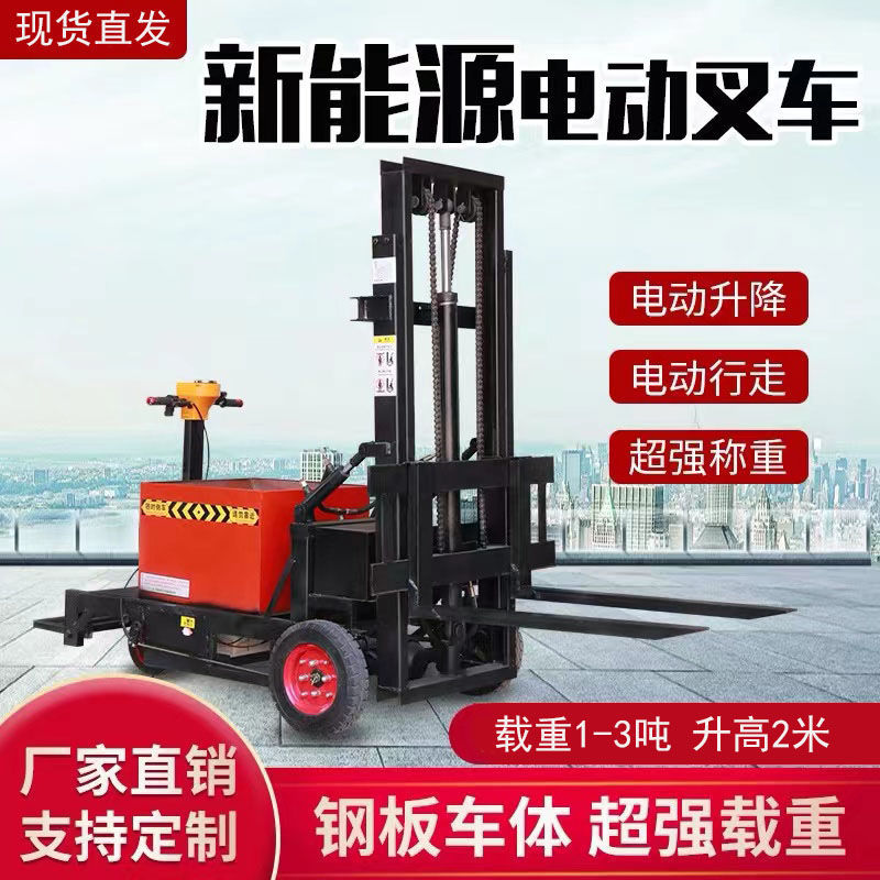 黄陵县小型电动叉车1吨站驾式2吨液压升高铲车全自动仓储堆高车